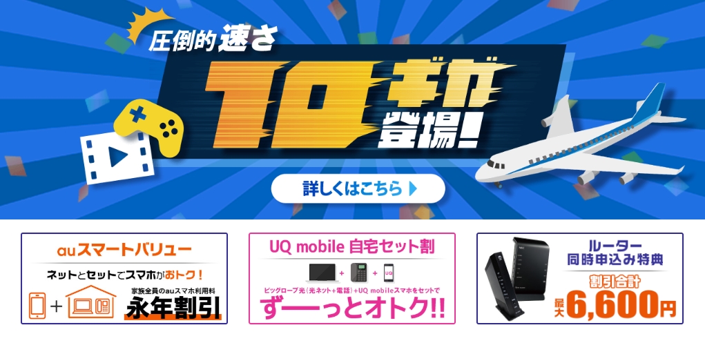 10ギガ対応の高速プランも月額6,578円とお得。動画配信やオンラインゲーム、テレワーク用途にも十分対応できる性能で、「大容量でも快適に使いたい」というユーザーに人気です。
